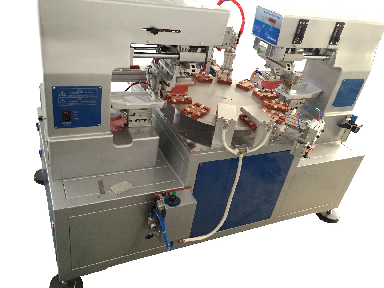 2、 定位準確,轉(zhuǎn)盤四個印刷位置采用氣動側(cè)壓式定位,準確而穩(wěn)定。